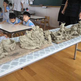 先日、八戸市在住の陶芸の先生に来園していただいて、陶芸教室を行いました。いつもとは違う土粘土の感触にに、「冷た~い!」「かたい…」と言いながら、自分の作りたいものを作っていました。恐竜、うさぎ、ハートの小物入れ・・・など子供たちの発想で作る作品は本当に芸術そのものです。作品は2度焼きしますが、今から焼き上がりが楽しみなようです。陶芸教室で作った作品は、10月に行われる作品展&バザーで展示されます!どうぞ、ブログをご覧の皆さん、作品鑑賞に遊びにいらしてください。